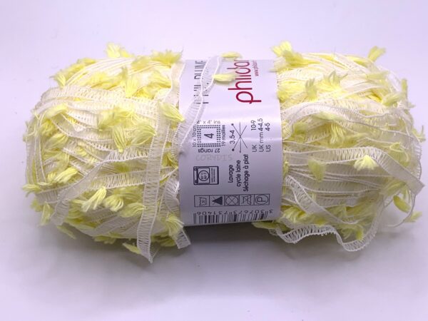 Laine fantaisie ruban avec petits pompons jaune tous les 2,5cm environ.